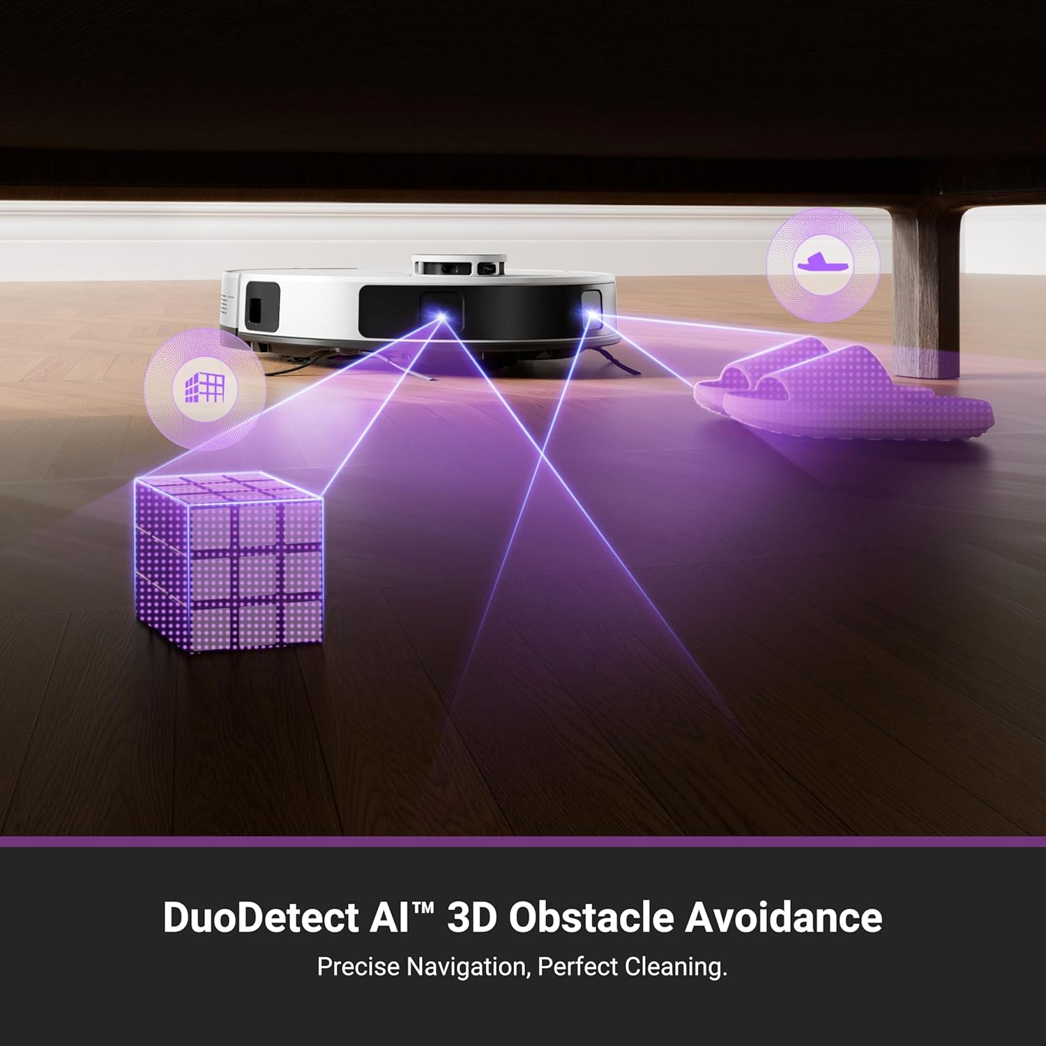 DuoDetect AI 3D Obstacle Avoidance: Utilizes dual LiDAR sensors for precise navigation, avoiding obstacles even in low-light conditions.